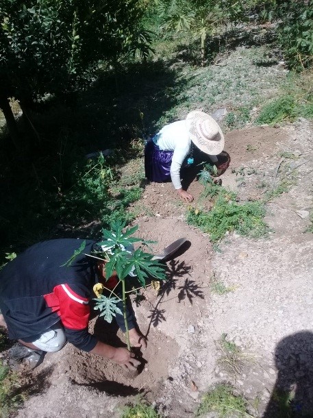 Se trabaja en la huerta y la granja de la CEA. Así también en los huertos de aquellas personas que son beneficiarios de K’anchay, con la instalación de sistemas de riego, construcción de vieros, plantación de hortalizas, etc.